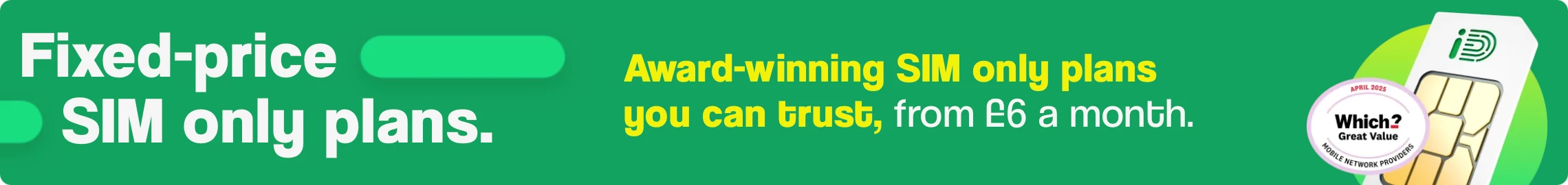 This is the perfect moment to check out iD Mobile. Our fixed price SIM Only plans guarantee that the price you sign up for remains fixed for the entire length of your contract. No nasty surprises, complete peace of mind!