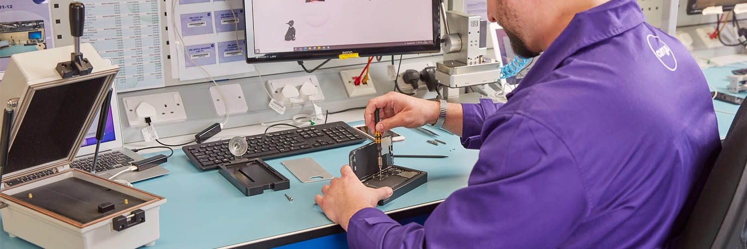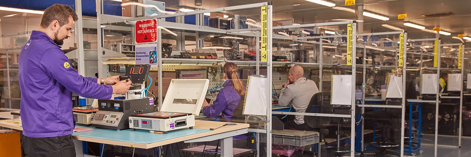 A big part of that effort happens at our Newark repair labs — one of Europe's largest tech repair and refurbishment facilities. Here, devices are assessed and either: